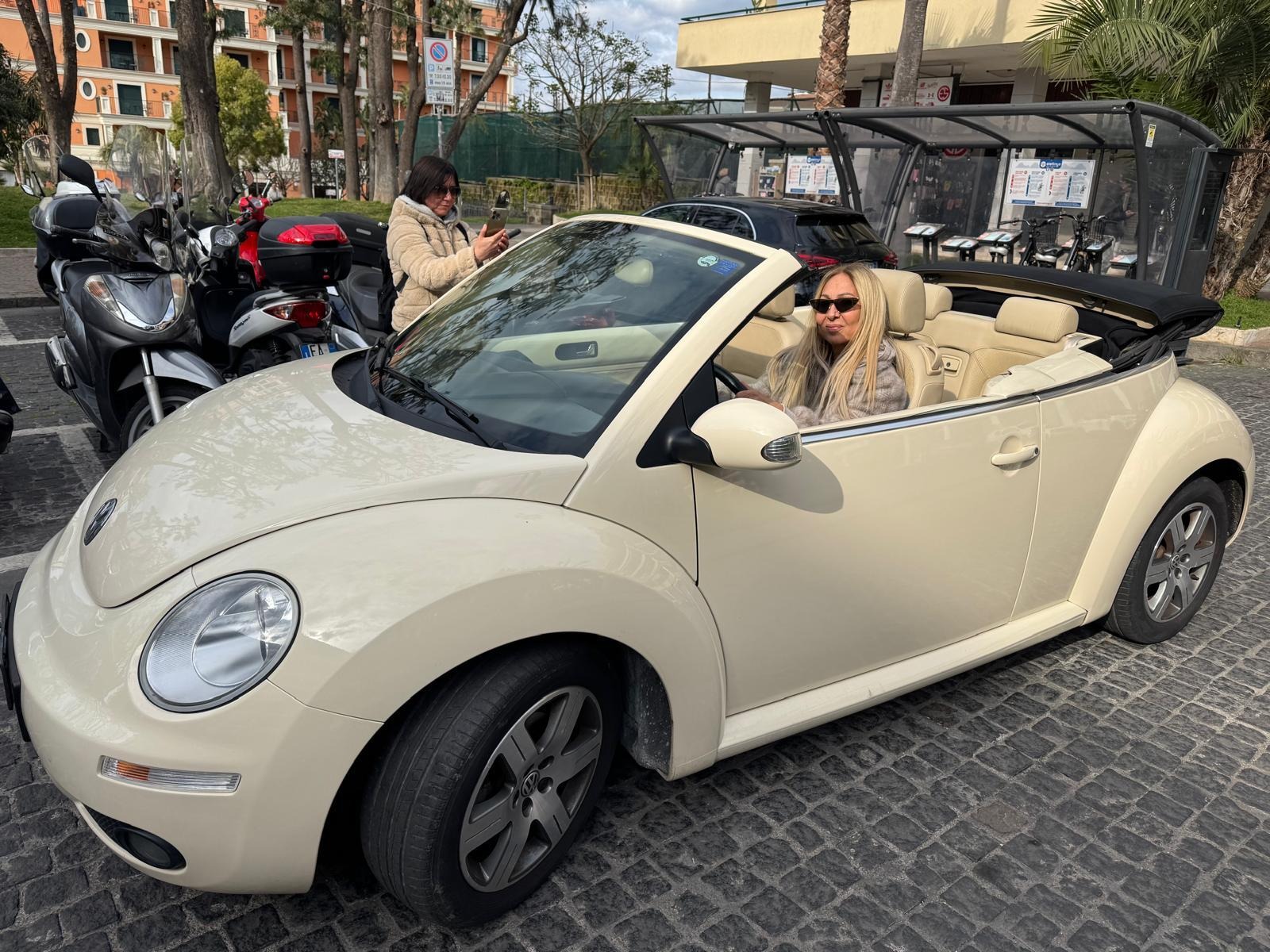 La Volkswagen New Beetle cabriolet è un'icona decappottabile a 4 posti che rivisita in chiave moderna il classico Maggiolino, distinguendosi per il design retrò e la capote elettrica.